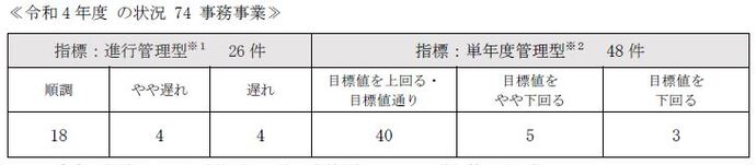 中期経営計画に掲げる施策、事務事業に成果目標を設け、その進行管理を行うとともに、事務事業の必要性・有効性・効率性等の検証を行いました。また、課題や今後の取組を取りまとめました。